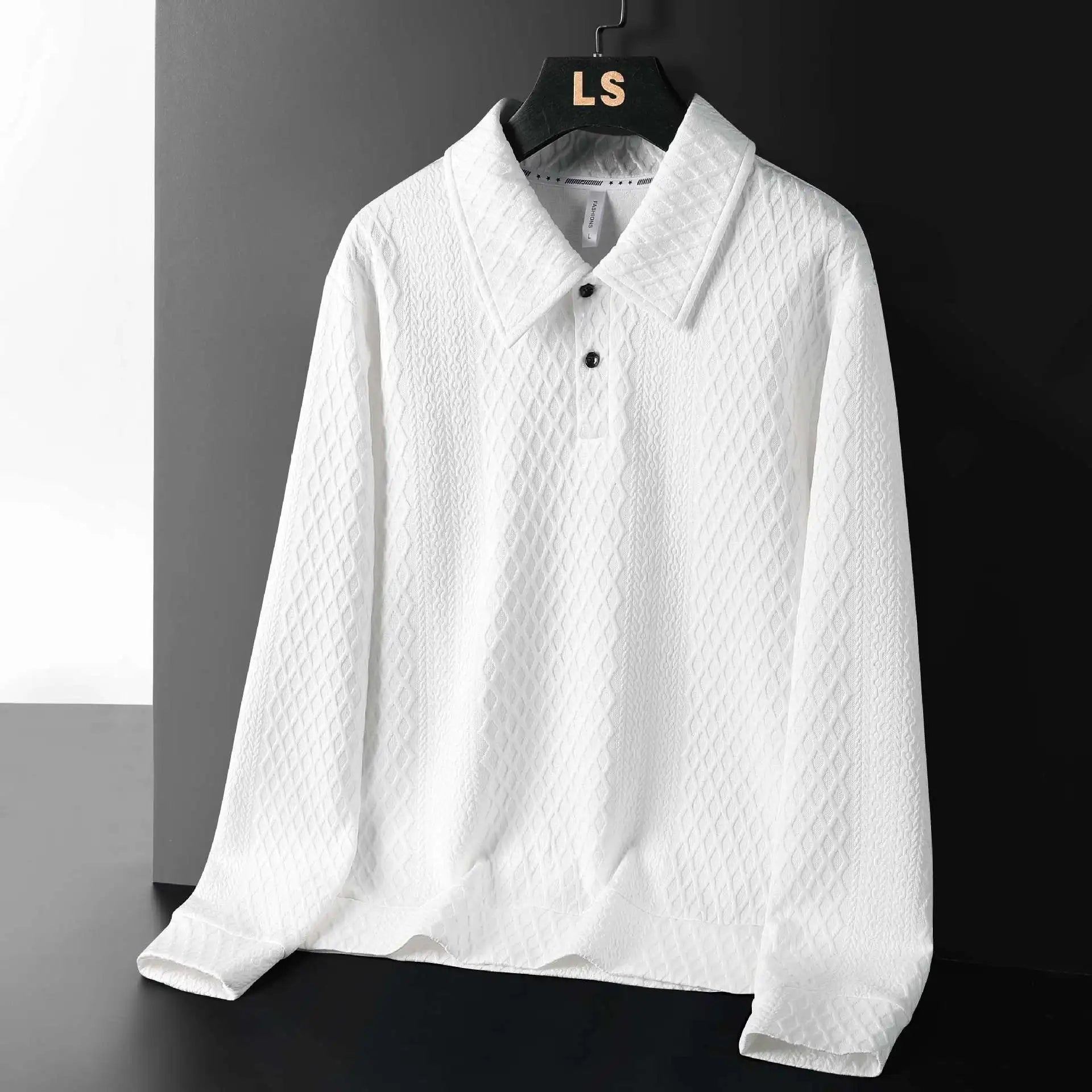 Refresh your wardrobe with a 100% cotton long-sleeve polo, featuring a premium self-textured design and a classic turn-down collar, expertly crafted for refined comfort.